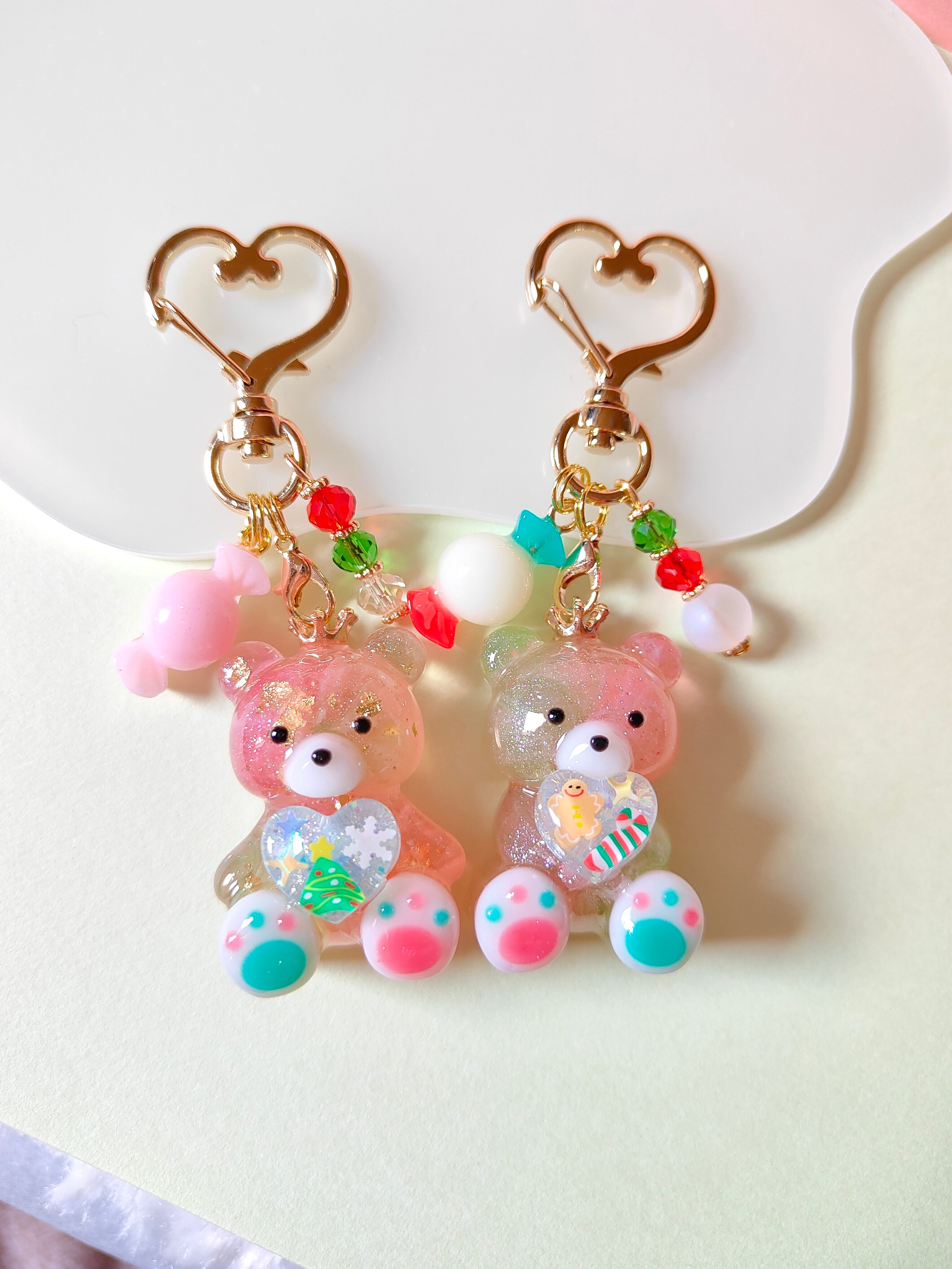 【ペア】クリスマスハートの宝石♡一緒にお出かけくまちゃんキーホルダー レジン 推し活 くま