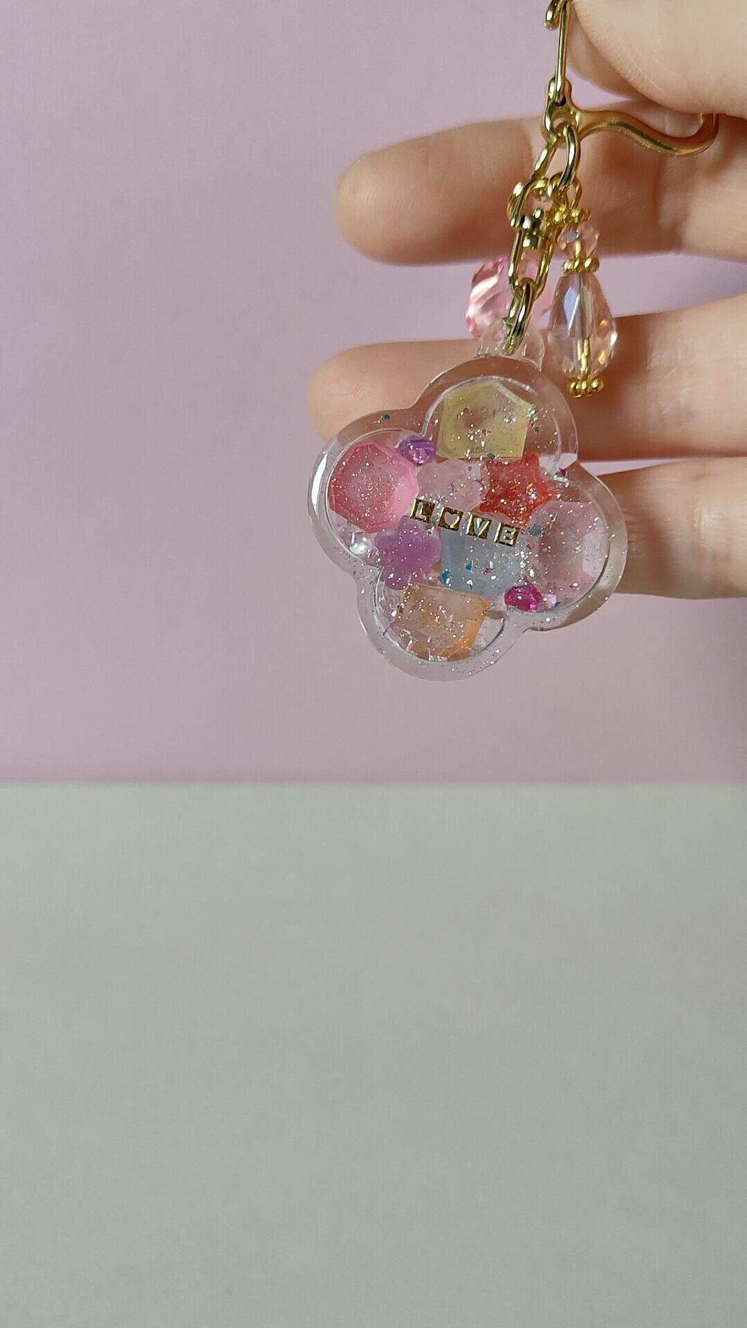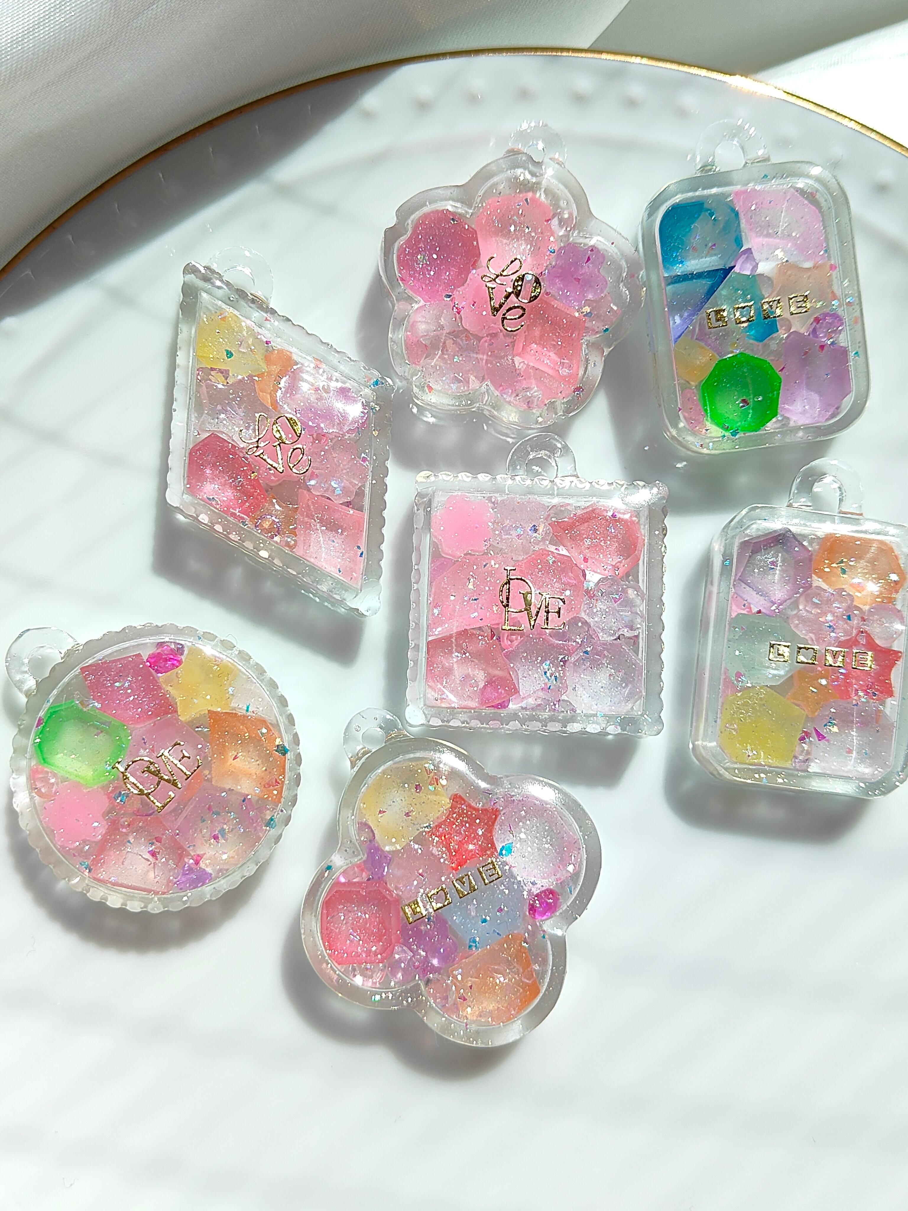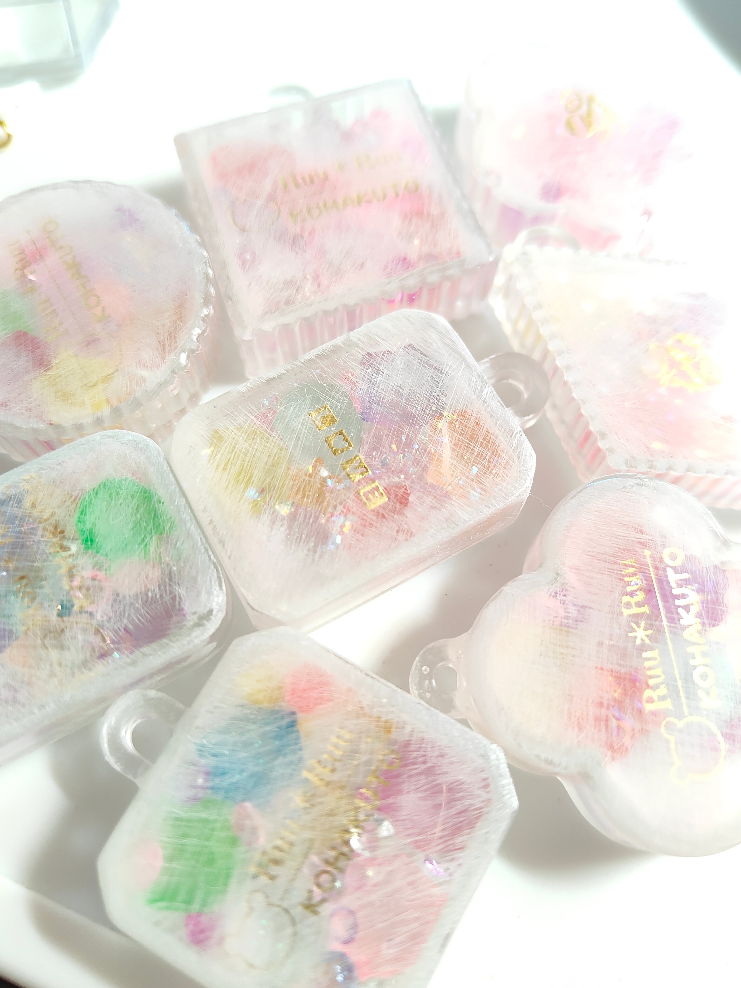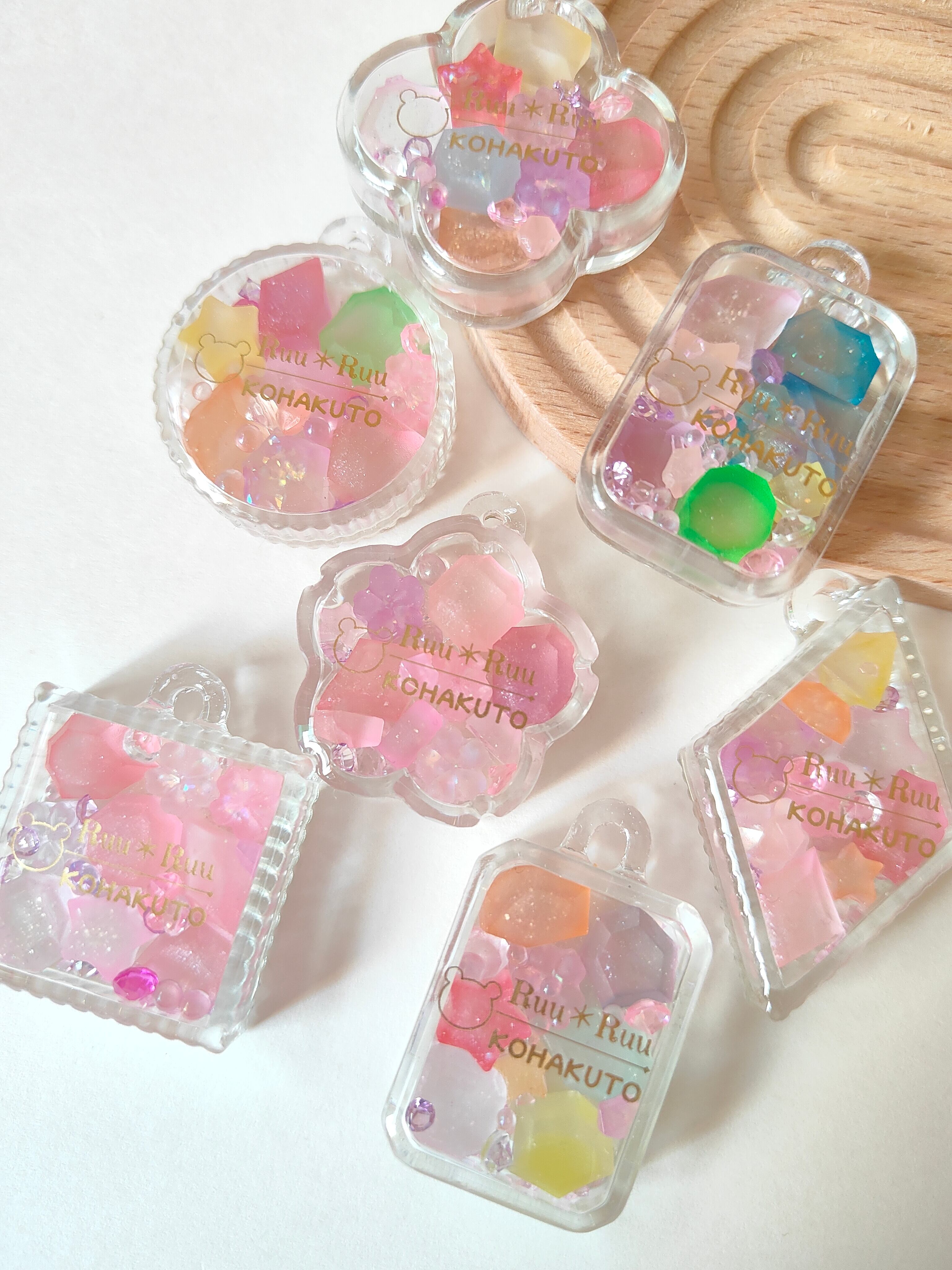 ⑥キラキラ琥珀糖BOXのシャカシャカキーホルダー♡キーホルダー レジン