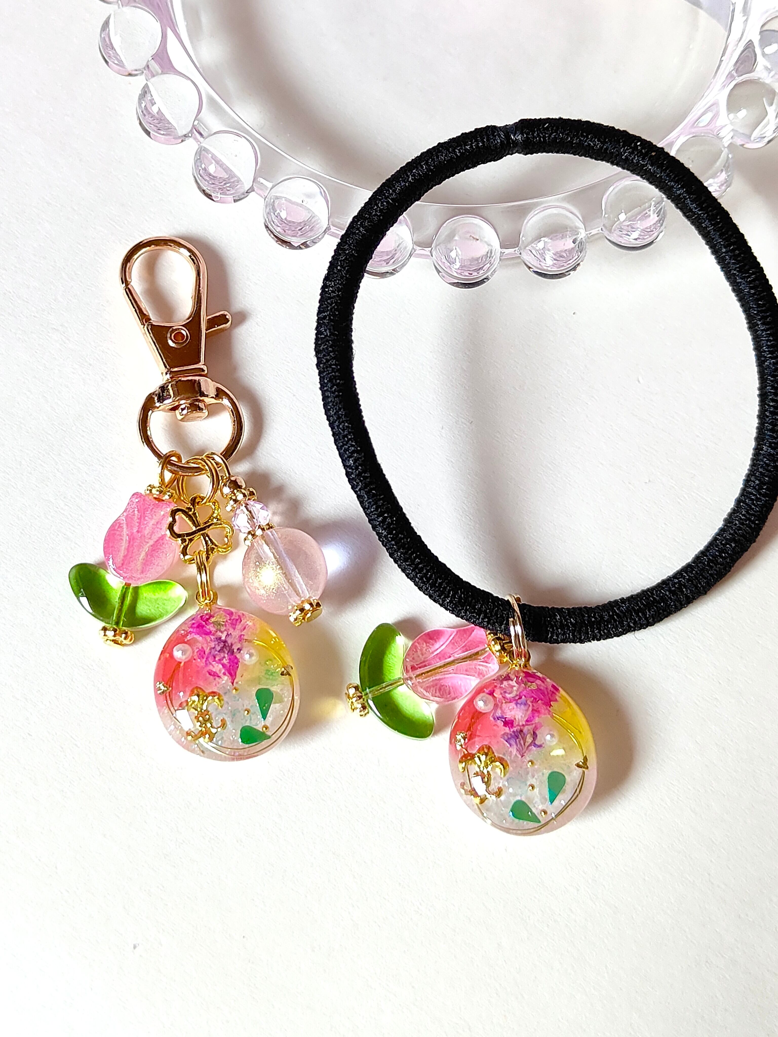 【ヘアゴム】Dropチューリップ レジン キーホルダー